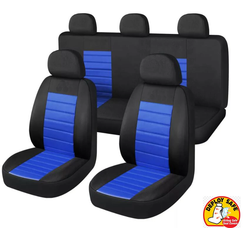 A 9 részes univerzális üléshuzat szett kék-fekete színkombinációban készült. Az univerzális méretnek és a rögzítési lehetőségnek köszönhetően számos autótípussal kompatibilis. A huzatok fém rögzítőkampók segítségével rögzíthetők az ülés alján, így a felszerelés gyorsan elvégezhető. A szett 2 helyen osztható hátsó üléshez készült, valamint légzsákos autókban is használható. Az anyag 70% poliészter és 30% acryl, amely rugalmas és ellenálló kialakítású. A huzatok 30°C-on moshatók.