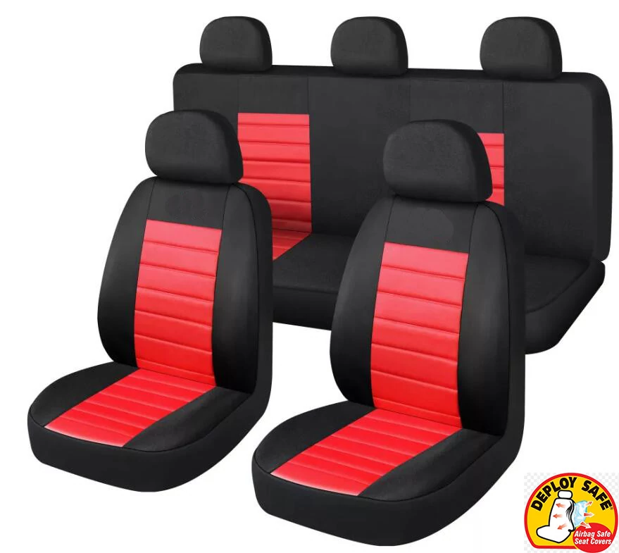 A 9 részes univerzális üléshuzat szett piros-fekete színkombinációban készült. Az univerzális méretnek és a rögzítési lehetőségnek köszönhetően számos autótípussal kompatibilis. A huzatok fém rögzítőkampók segítségével rögzíthetők az ülés alján, így a felszerelés gyorsan elvégezhető. A szett 2 helyen osztható hátsó üléshez készült, valamint légzsákos autókban is használható. Az anyag 70% poliészter és 30% acryl, amely rugalmas és ellenálló kialakítású. A huzatok 30°C-on moshatók.