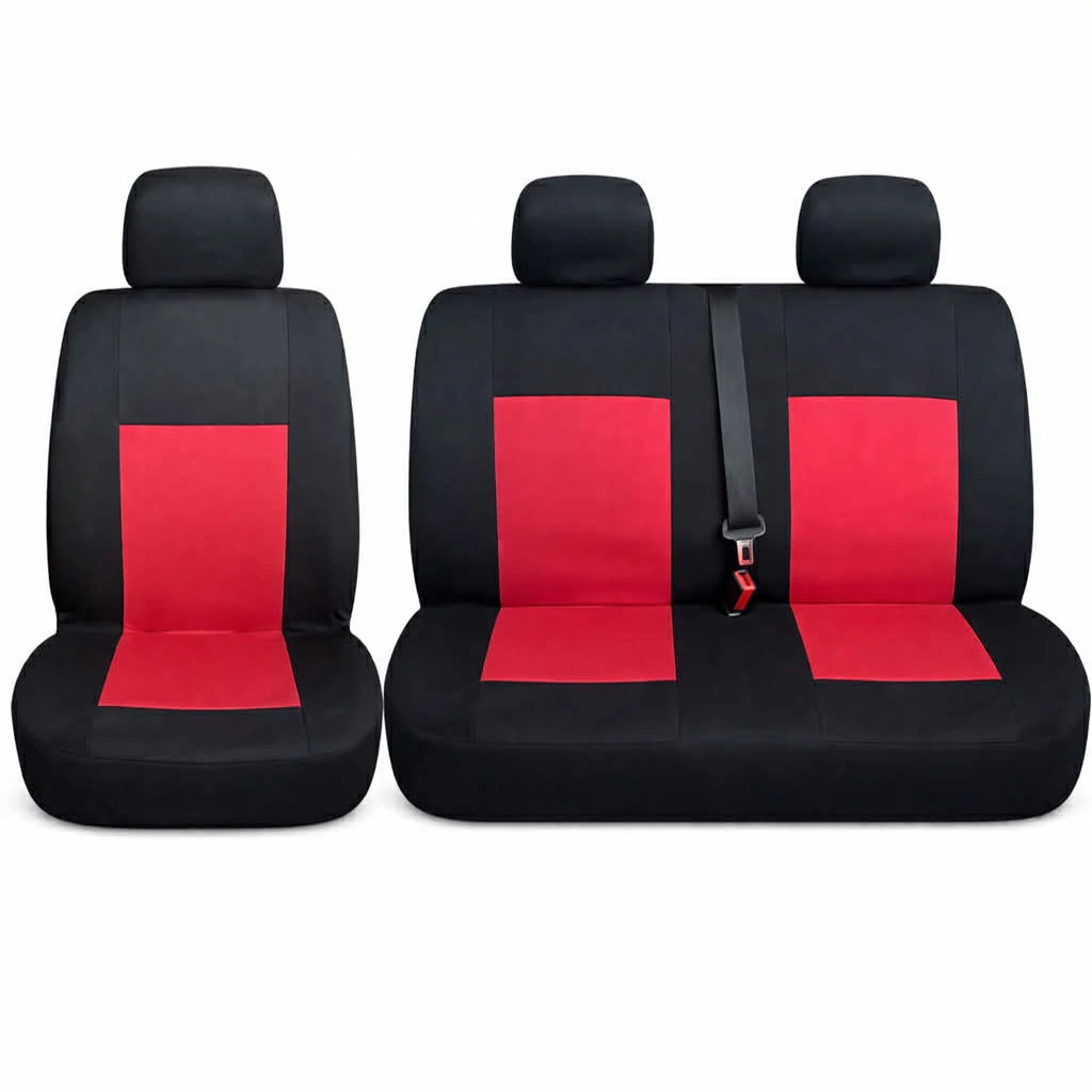 Az 1+2 furgon üléshuzat fekete-piros színű kivitelben készült, és 5 mm-es habszivaccsal rendelkezik a kényelmesebb használat érdekében. A huzat biztonsági öv számára kialakított nyílással készül, így nem akadályozza a biztonságos közlekedést.
