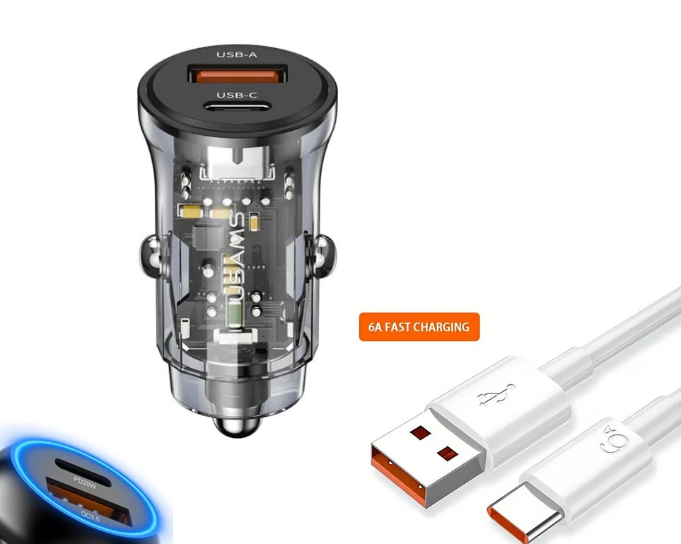 A gyors töltő USB és USB-C csatlakozóval rendelkező szivargyújtós autós töltő, amely praktikus megoldást kínál mobil eszközök töltésére utazás közben. A készülék 12-24V feszültséggel működik, így személyautókban és nagyobb járművekben egyaránt használható. A töltő USB-A és USB-C porttal van ellátva, így többféle eszköz csatlakoztatása is megoldható. A gyorstöltés támogatás lehetővé teszi a kompatibilis készülékek hatékonyabb töltését. A maximális teljesítmény 20W, a kimenet összesen 5V/5A. A csomag tartalmaz egy USB Type-C töltőkábelt is, amely akár 6A gyorstöltés támogatására képes. A kábel strapabíró kialakítású, többféle anyag kombinációjával készült, így hosszabb élettartamot biztosít.