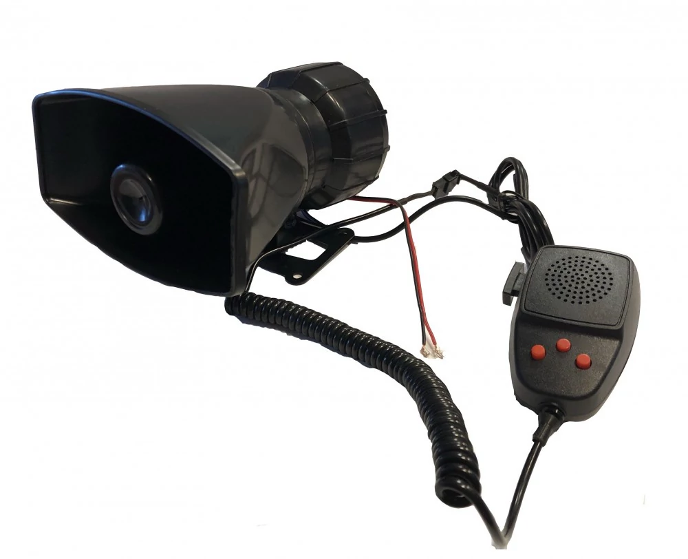 Kapcsolóval ellátott, 3 szólamú mikrofonos sziréna 12V / 50W kivitelben.