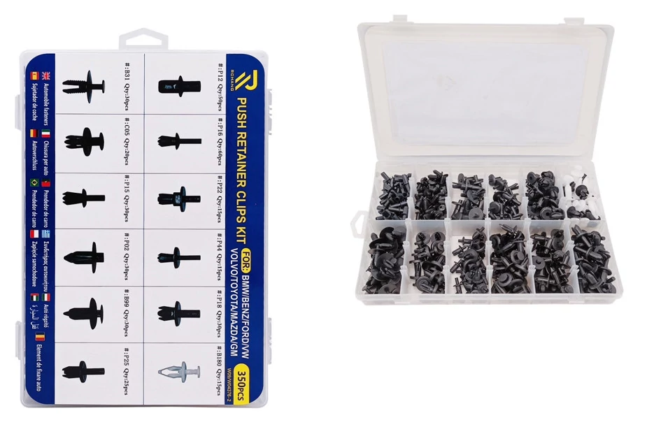 350 darabos autó patent szett különböző rögzítő elemekkel.