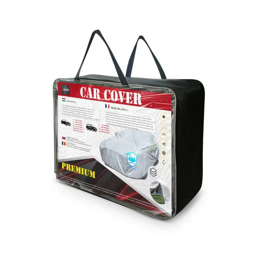 A prémium 3 rétegű autóponyva hatékony védelmet biztosít az autó számára a különböző környezeti hatásokkal szemben. Az alsó réteg vízálló és kopásálló, amely megvédi a járművet a nedvességtől és a környezeti hatásoktól. A középső réteg extra párnázatot biztosít, amely segít elkerülni a kisebb sérüléseket és karcolásokat. A felső réteg UV-védelmet nyújt, amely csökkenti a napfény okozta károsodásokat és az elszíneződést. A cipzározható kialakítás lehetővé teszi a ponyva egyszerű felhelyezését és eltávolítását, valamint kényelmes hozzáférést biztosít az autóhoz. A ponyva elején és hátulján erős, rugalmas gumiszalag található, amely segít stabilan a helyén tartani a ponyvát rosszabb időjárási körülmények között is. A ponyván található zsinórok segítségével a ponyva erősen rögzíthető a járműhöz. A ponyva védelmet nyújt a szél ellen (max. 50 km/h-ig), valamint az eső, fagy, hó, UV sugárzás, füst és por ellen.
