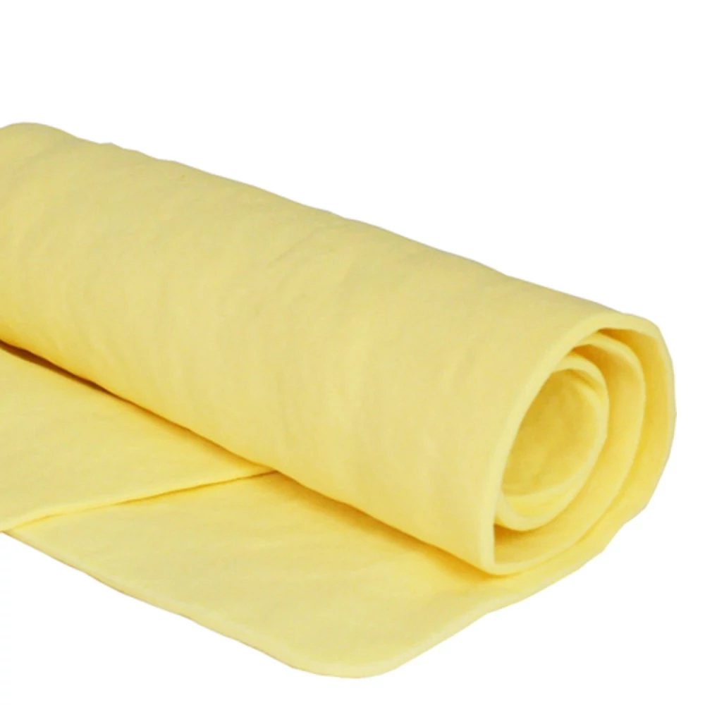 A 43x32 cm méretű szintetikus szarvasbőr kendő ideális választás autóápolási és háztartási feladatokhoz. Puha, kézreálló kialakításának köszönhetően alkalmas fényezés, króm alkatrészek és üvegfelületek tisztítására. Kiváló nedvszívó képességgel rendelkezik, nem hagy csíkokat, foltot vagy karcot a felületen. A kendő szintetikus anyagból készült, amely ellenáll a tisztítószereknek, olajnak és benzinnek, valamint szakadásálló kialakítású. Használat előtt és után hideg vízzel történő öblítése javasolt, majd kicsavarva visszahelyezhető a tartódobozba, amely segít megőrizni a nedvességét.