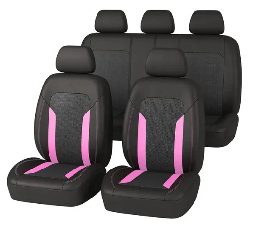 9 részes univerzális üléshuzat szett pink-fekete színben, amely teljes védelmet nyújt az autó üléseinek, beleértve az első és a hátsó üléseket, valamint a fejtámlákat is. Az univerzális méretnek és rögzíthetőségnek köszönhetően sok autóval kompatibilis. A huzat fém rögzítőkampók segítségével könnyen és gyorsan rögzíthető az ülés alján. A huzat tépőzáras nyílással rendelkezik az oldallégzsák számára, így légzsák kompatibilis kialakítású. A 3 mm-es habszivacs réteg hozzájárul a komfortosabb használathoz, a rugalmas anyag pedig segíti a megfelelő illeszkedést. A hátsó ülés huzata cipzáras kialakítású, amely lehetővé teszi az ülés osztását.
