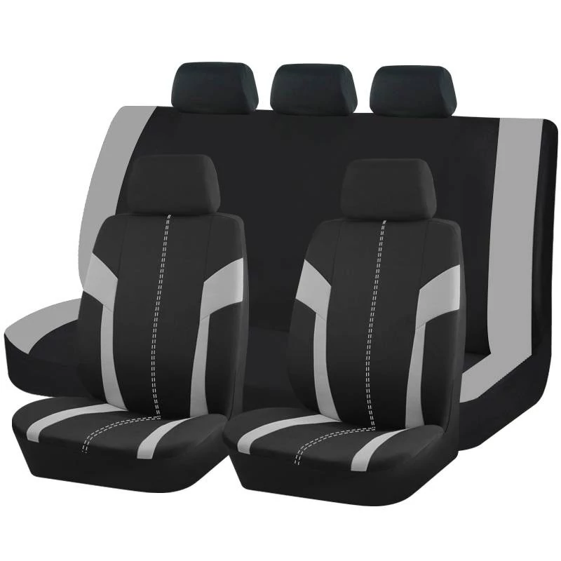 9 részes univerzális üléshuzat szett szürke-fekete színben, amely teljes védelmet nyújt az autó üléseinek, beleértve az első és a hátsó üléseket, valamint a fejtámlákat is. Az univerzális méretnek és rögzíthetőségnek köszönhetően sok autóval kompatibilis. A huzat fém rögzítőkampók segítségével könnyen és gyorsan rögzíthető az ülés alján. A huzat tépőzáras nyílással rendelkezik az oldallégzsák számára, így légzsák kompatibilis kialakítású. A 2 mm-es habszivacs réteg hozzájárul a komfortosabb használathoz, a rugalmas anyag pedig segíti a megfelelő illeszkedést. A hátsó ülés huzata cipzáras kialakítású, amely lehetővé teszi az ülés 2 helyen történő osztását.