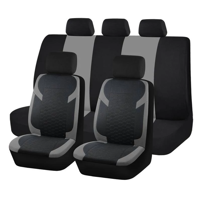 9 részes univerzális üléshuzat szett szürke-fekete színben, amely teljes védelmet nyújt az autó üléseinek, beleértve az első és a hátsó üléseket, valamint a fejtámlákat is. Az univerzális méretnek és rögzíthetőségnek köszönhetően sok autóval kompatibilis. A huzat fém rögzítőkampók segítségével könnyen és gyorsan rögzíthető az ülés alján. A huzat tépőzáras nyílással rendelkezik az oldallégzsák számára, így légzsák kompatibilis kialakítású. A 2 mm-es habszivacs réteg hozzájárul a komfortosabb használathoz, a rugalmas anyag pedig segíti a megfelelő illeszkedést. A hátsó ülés huzata cipzáras kialakítású, amely lehetővé teszi az ülés 2 helyen történő osztását.