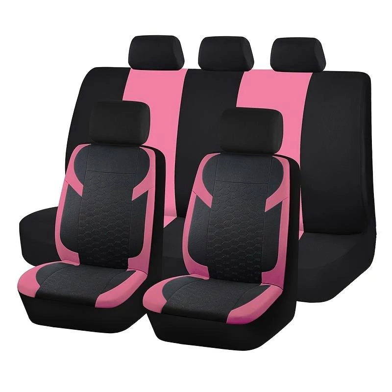 9 részes univerzális üléshuzat szett pink-fekete színben, amely teljes védelmet nyújt az autó üléseinek, beleértve az első és a hátsó üléseket, valamint a fejtámlákat is. Az univerzális méretnek és rögzíthetőségnek köszönhetően sok autóval kompatibilis. A huzat fém rögzítőkampók segítségével könnyen és gyorsan rögzíthető az ülés alján. A huzat tépőzáras nyílással rendelkezik az oldallégzsák számára, így légzsák kompatibilis kialakítású. A 2 mm-es habszivacs réteg hozzájárul a komfortosabb használathoz, a rugalmas anyag pedig segíti a megfelelő illeszkedést. A hátsó ülés huzata cipzáras kialakítású, amely lehetővé teszi az ülés 2 helyen történő osztását.