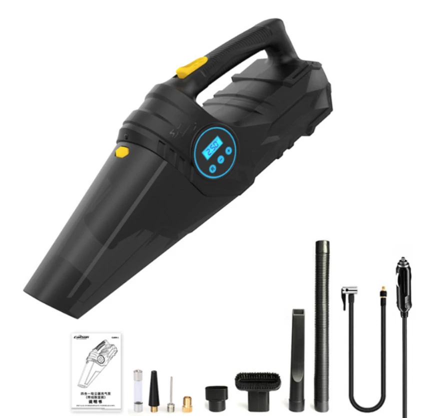 Az autós porszívó és kompresszor egy praktikus 2 az 1-ben megoldás, amely lehetővé teszi az autó belső tisztítását és a gumiabroncsok felfújását egyetlen eszközzel.