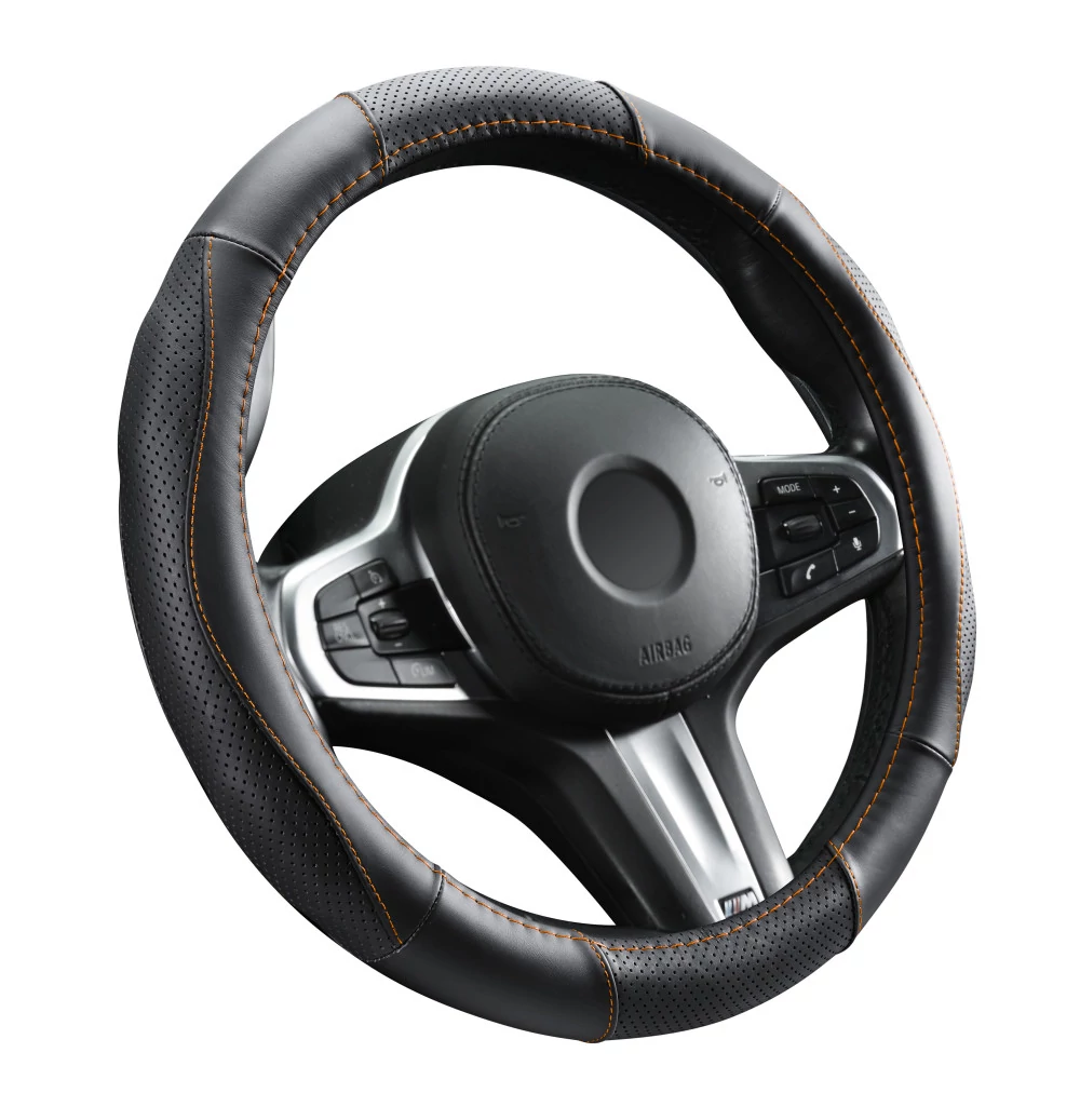 Ez a valódi bőr kormányvédő lyukacsos mintával készült, fekete színben, narancssárga varrásos kialakítással. Az univerzális kivitel lehetővé teszi a használatot több járműtípusnál. A kialakítás segíti a biztos fogást, és megakadályozza a kéz megcsúszását a kormányon. A termék Franciaországban tervezett (Francia Design). A lyukacsos felület hozzájárul a kényelmes használathoz. A felszerelés egyszerű: helyezze a kormányvédőt a kormány felső részére, majd lefelé húzva rögzítse. Mindig a megfelelő méretű kormányvédőt használja. A termék 36–38 cm átmérőjű kormányokhoz használható.