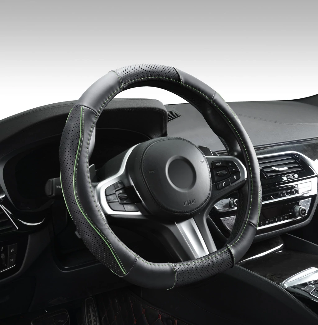 Ez a "D" típusú valódi bőr kormányvédő lyukacsos mintával készült, fekete színben, zöld betétes kialakítással. Az univerzális kivitel lehetővé teszi a használatot több járműtípusnál. A kialakítás segíti a biztos fogást, és megakadályozza a kéz megcsúszását a kormányon. A termék Franciaországban tervezett (Francia Design). A lyukacsos felület hozzájárul a kényelmes használathoz. A felszerelés egyszerű: helyezze a kormányvédőt a kormány felső részére, majd lefelé húzva rögzítse. Mindig a megfelelő méretű kormányvédőt használja. A termék 36–38 cm átmérőjű kormányokhoz használható.