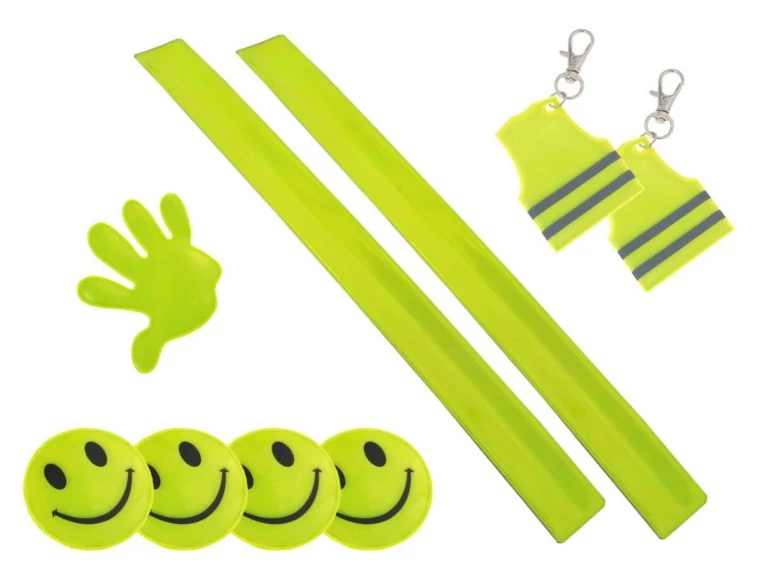 A csomag tartalmaz kulcstartókat, matricákat és fényvisszaverő csíkokat is. Egyszerű megoldás a biztonság növelésére mindennapi használat során.