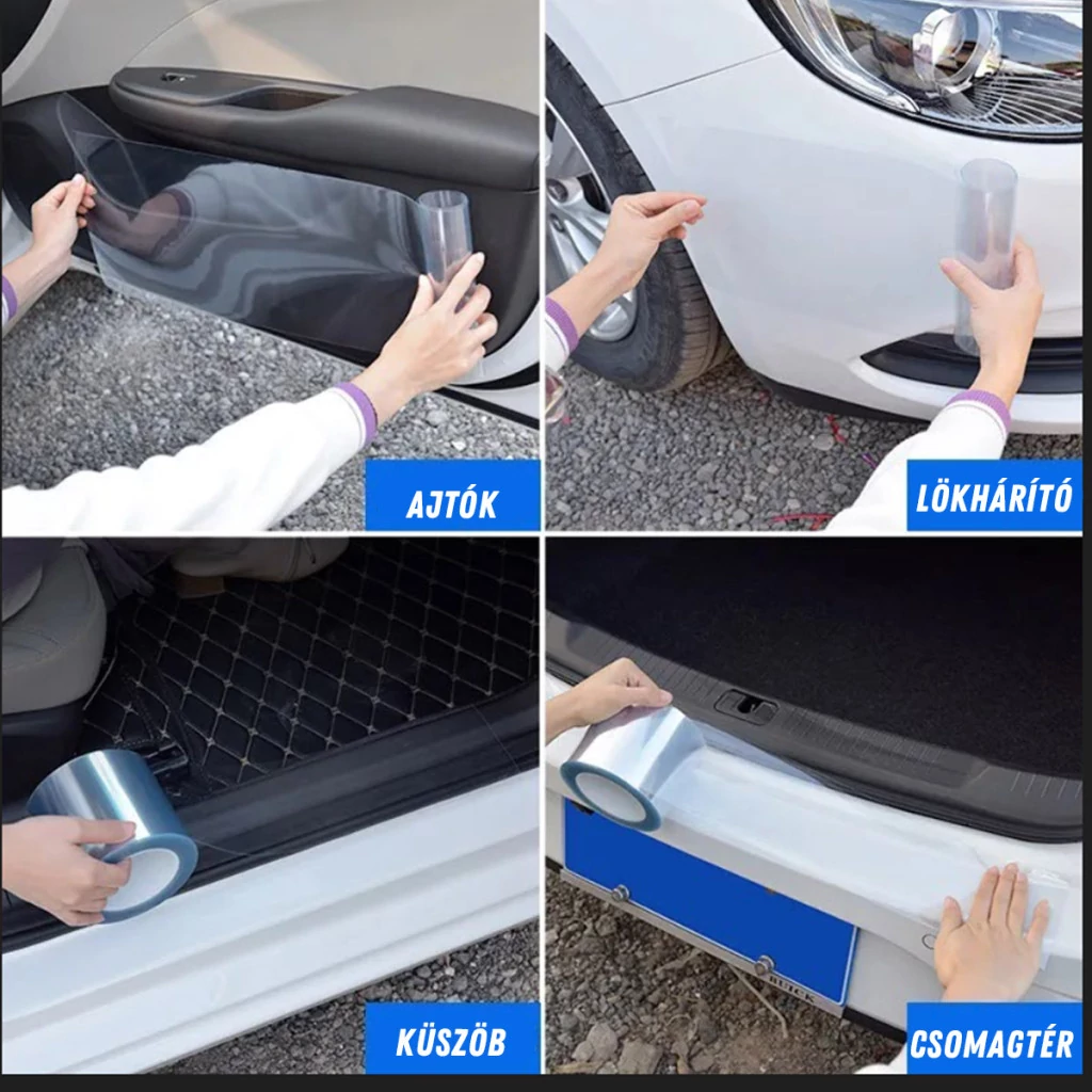 A 150 mm széles és 10 méter hosszú tekercs lehetővé teszi különböző karosszériaelemek, például ajtóélek, küszöbök, sárvédők és lökhárítók védelmét.