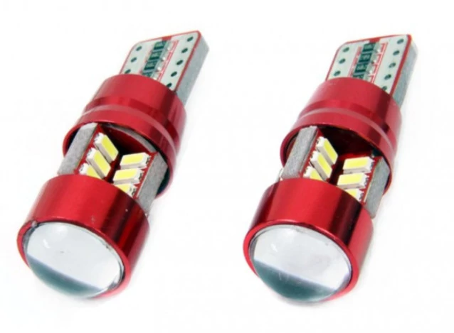 T10 (W5W) LED izzó 27 darab 3014 SMD LED-del, amely CANBUS kompatibilis kivitelben készült. Alkalmas helyzetjelzőhöz, rendszámtábla világításhoz vagy belső tér megvilágítására.