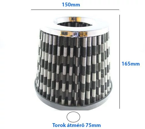 Ez az univerzális sport légszűrő karbon mintás kivitelben készült. A megadott méretek alapján illeszthető a megfelelő rendszerhez. A használati utasítás szerint első üzembe helyezés előtt olajozni szükséges, és rendszeres tisztítást igényel.