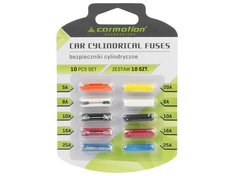 Ez a műanyag hengeres biztosíték készlet 10 darabot tartalmaz különböző áramerősségű kivitelben. A készlet többféle biztosítékot tartalmaz, így különböző igényekhez használható.