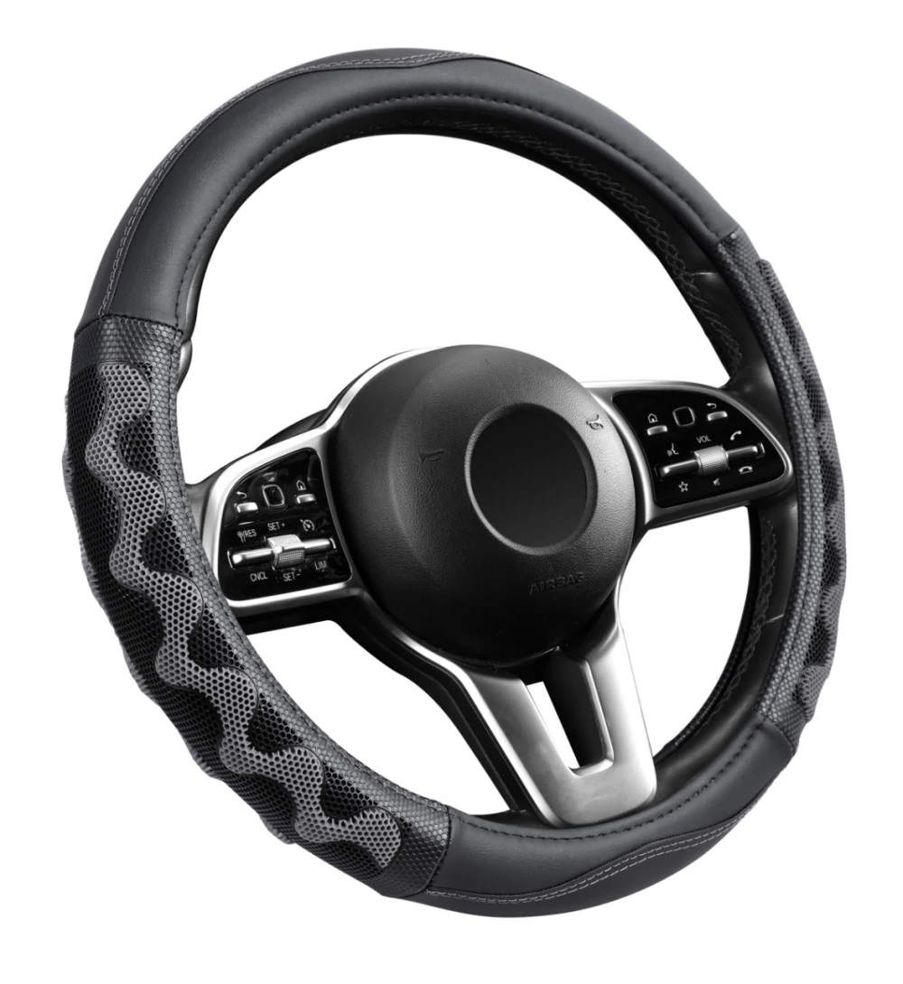 Műbőr kormányvédő fekete-szürke színben, amely 38 cm átmérőjű kormányokhoz használható. A kiváló minőségű bőr hatású külső felület kényelmes fogást biztosít vezetés közben. A belső kialakítás segít megakadályozni, hogy a kormányvédő elforduljon a kormányon, így stabil használatot biztosít. A termék szintetikus anyagból készült, és egyszerűen, gyorsan felhelyezhető, így praktikus megoldás a mindennapi használat során.