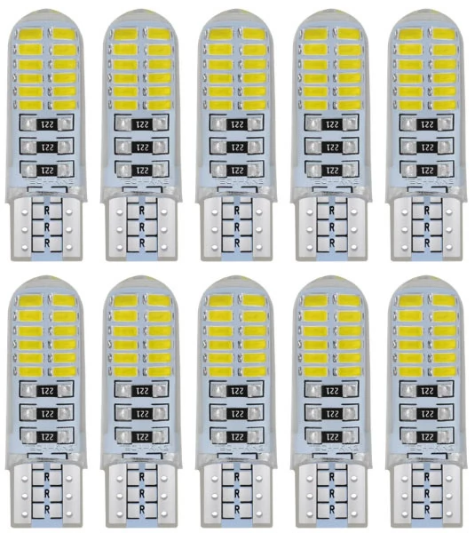 T10 (W5W) LED izzó szett szilikonos kivitelben, amely műszerfal világításhoz, helyzetjelzőként, belső utastér világításként vagy rendszámtábla világításként használható. 12V rendszerhez készült.