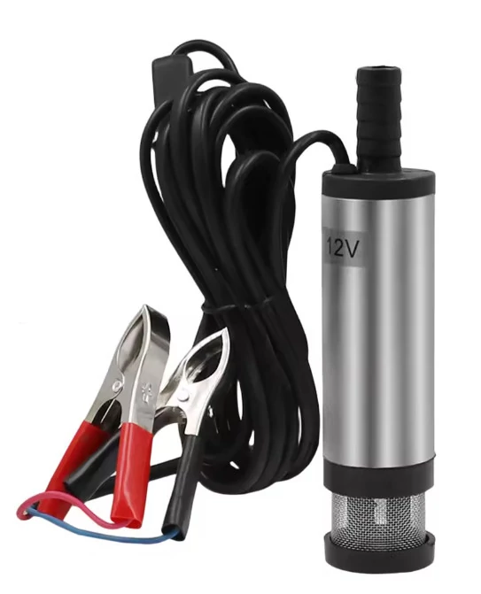12 V-os búvárszivattyú Ø50 mm átmérővel, gázolaj, fűtőolaj és más hasonló sűrűségű folyadékok szivattyúzására. Nagyon praktikus és kényelmes a használata. A szivattyú bemeneténél (alul) a fémhálóból készült speciális szűrő megakadályozza az olyan elemek beszívását, amelyek károsíthatják a készüléket és szennyezhetik a folyadékot. Az áteresztőképesség körülbelül 15 l/perc, ha 12 V DC táplálja. Használat: A szivattyúzott folyadék hőmérséklete nem haladhatja meg a 30°C-ot, és a maximális környezeti hőmérséklet nem haladhatja meg a 40°C-ot.